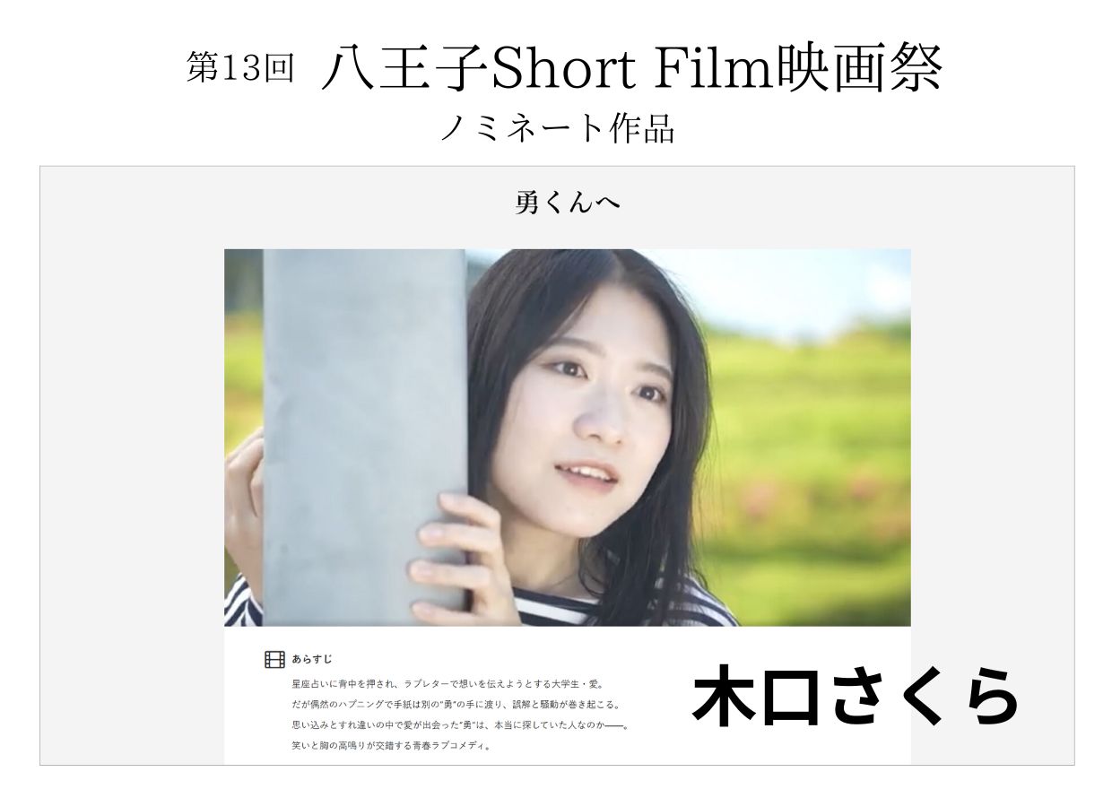 第13回 八王子ShortFilm映画祭 ノミネート作品「勇くんへ」出演