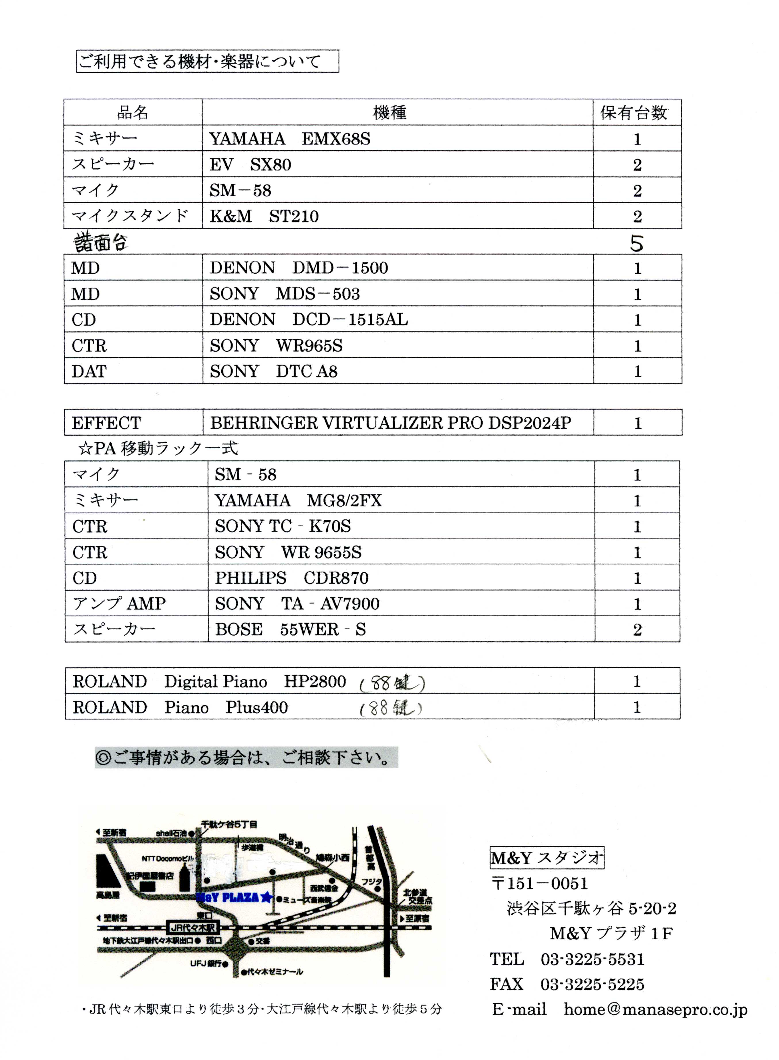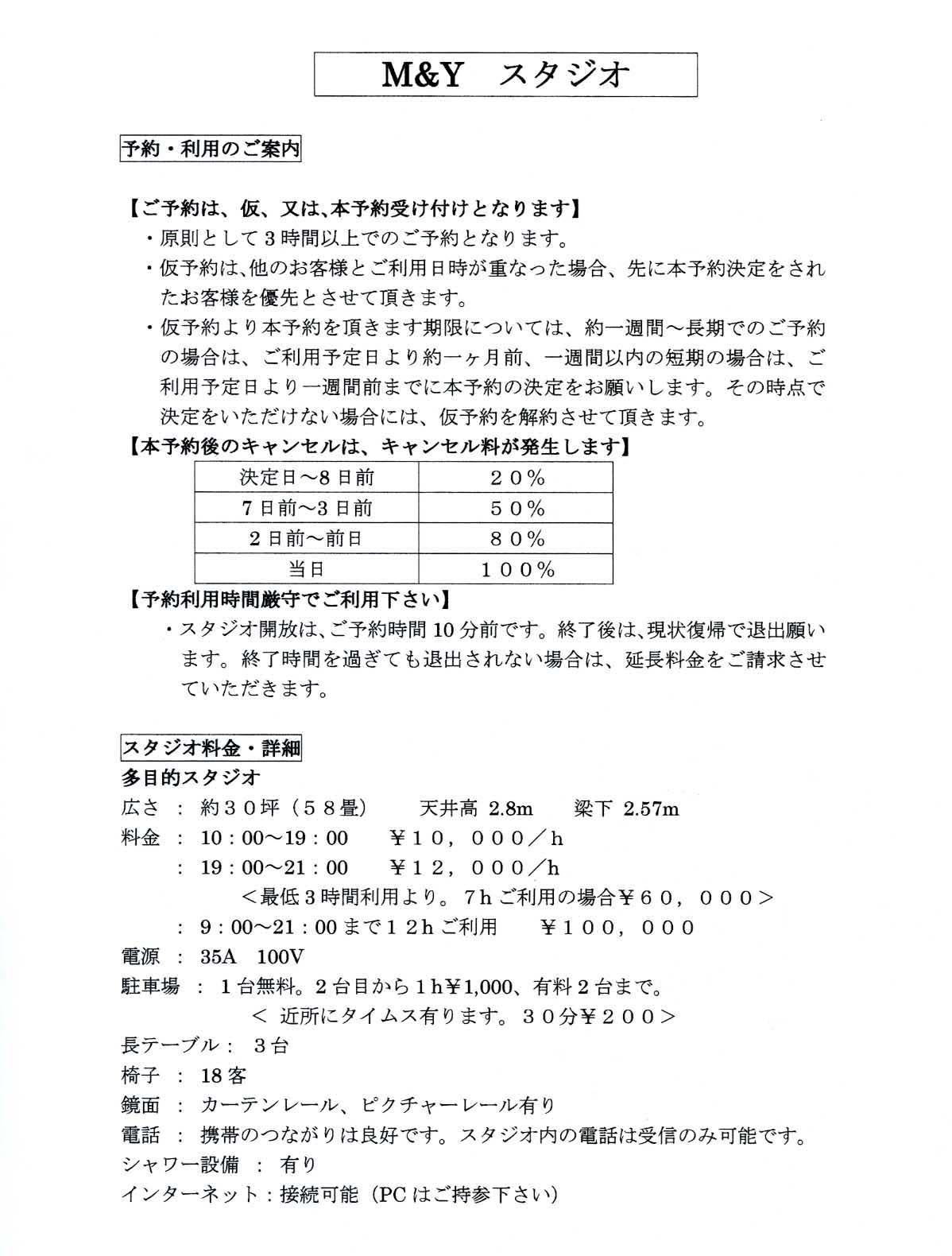 M&Yスタジオ貸出案内
