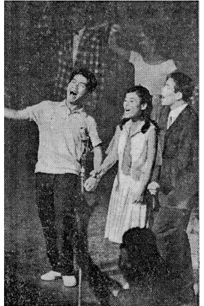 初日17:00 平日18:00 土曜13:00 18:00 日祝12:00 17:00 600円 450円(公演は6月11日までだが、盲腸炎のため6月4日で休演)作:椎名龍治 演出:菊田一夫 美術:真木小太郎 照明:大庭三郎 音楽:村山芳男 舞台監督:平山一夫 Capacity:750席