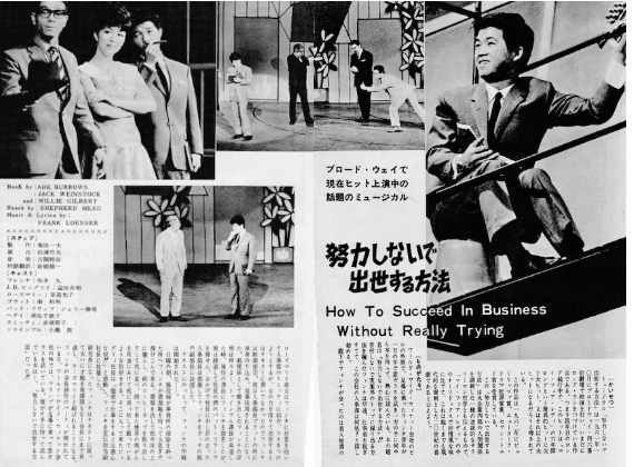 1961年10月にブロードウェイ46番街劇場で初演。ロングランを続けるヒット作の日本公演。その後、舞台と同じロバート・モース主演で1966年にデイヴィッド・スウィフトが映画用に脚色して製作・監督し映画化。宝塚歌劇でも1996年6月、花組真矢みきさん主演で舞台化。2011年雪組音月桂さんで再演。2020年9月〜10月渋谷と大阪で人気グループNEWSの増田貴久さん主演で再演されることが報じられ、2021年11月にも再演。