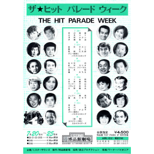 数々の人気歌手、ヒット曲を生み出して茶の間の話題をさらった音楽番組「ザ・ヒットパレード」のおなじみのスターたちが6日間にわたって懐かしの歌声をつづる「ザ・ヒットパレード・ウイーク」が、20〜25日、東京・銀座の博品館劇場で開かれる。演奏は毎回「踊る指揮者」として人気をさらったスマイリー小原とスカイライナーズ。出演は田辺靖雄、辺見マリ、伊藤素道ら(20日)、鈴木ヤスシ、園まり、ダニー飯田とパラダイスキング (21日)、佐々木功、紀本ヨシオら(22日)、ロミ山田、武井義明、ウィリー沖山ら(23日)ジェリー藤尾、藤尾トモ子(24日)、坂本九、石川進、森山かよ子ら(25日)