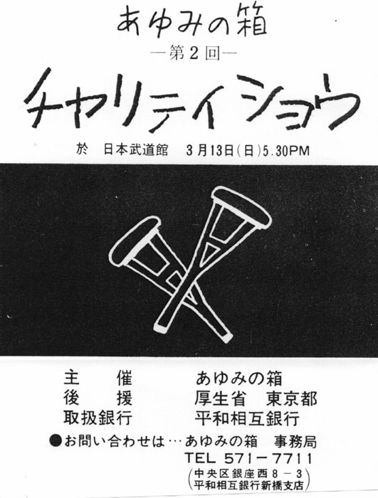 水上勉、伴淳三郎、森繁久弥らが中心になり小児マヒによる身体障害者の救済のための「あゆみの箱」運動の第一回チャリティ・ショー手をつなどうこの子等と」が6日夜東京・新宿厚生年金ホールで開かれた。