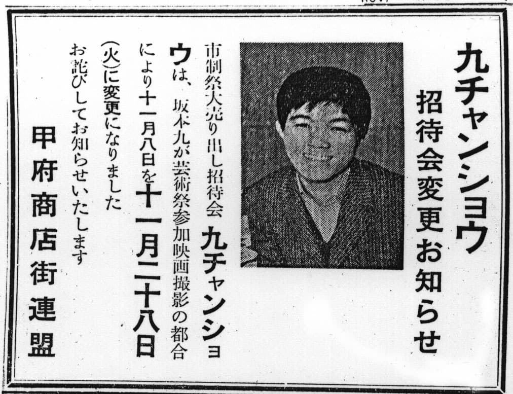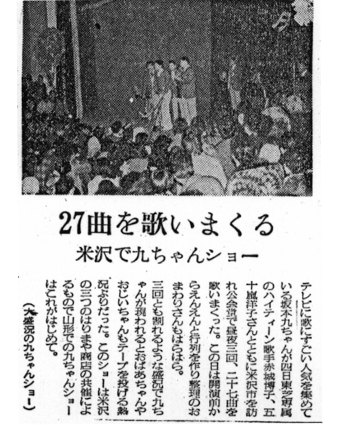 山形での九ちゃんショーはこれが初めて。3回公演とも割れるような声援で、おばあちゃんやおじいちゃんも紙テープを投げる熱狂と地元の新聞でも取り上げられた。