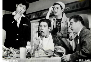 ロケ隊は品川駅へ。トップシーン駅弁製造業主人の三回忌を供養しようと親友の森繁、伴淳がハッピを着て駅弁を売るところと、女主人淡島千景と加東大介が結ばれて、森繁、伴淳、フランキーらが「再婚列車」を見送るラストシーン。何せ、交通量が激しい品川駅とあって、ロケ隊は朝10時から午後2時半までの団体列車がないという団体列車専用ホームの9、10番線に陣取って撮影をしたわけだが、出演者が「トリオ」の三人のほか、加東、淡島、淡路恵子、坂本九らオール・スターキャストというので、階段下に設けた網をかいくぐって見物人がチン入、撮影時間は限られているのにてんてんと、スタッフを困らせ、久松監督は声をからしていた。(スポーツニッポン1961-11-11記事より)