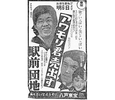 1961-01-14(土) | 大阪千日前大劇「魅惑のスターパレード」 LIVE 東京映画が杉浦幸雄の人気漫画「漫画横丁アトミックのおぼん」を映画化発表 フジテレビ 12:15〜「花椿ショウ 東は東」ON AIR 関西テレビ 13:30〜大阪千日前大劇「魅惑のスターパレード」ON AIR 文化放送 21:30〜「歌のプレゼント」ON AIR |