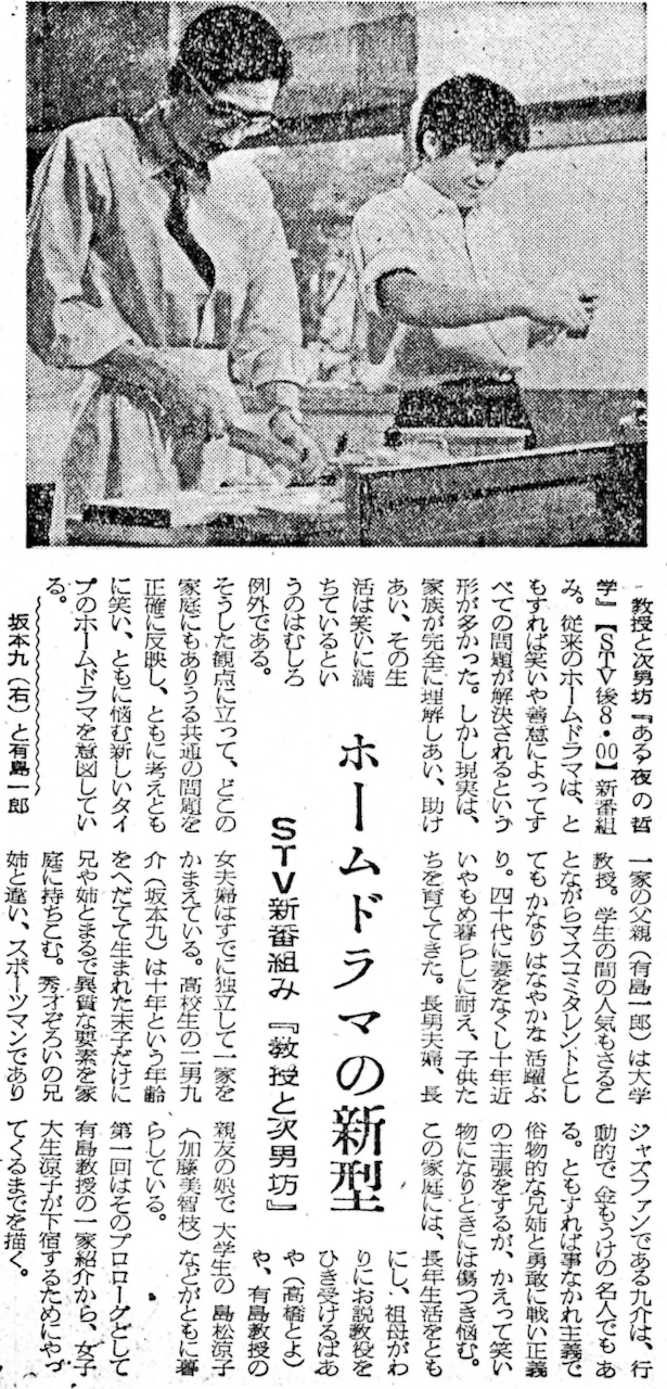 東京テレビ系全国ネット 毎週月曜21:15〜21:45(全77回)レギュラー出演:坂本九、森山加代子