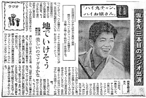 文化放送 毎週月曜〜土曜 07:40〜07:45(1961年1月16日(月)〜1962年8月31日まで全593回)出演:坂本九 浜美枝 構成:加藤文治・八田雄三