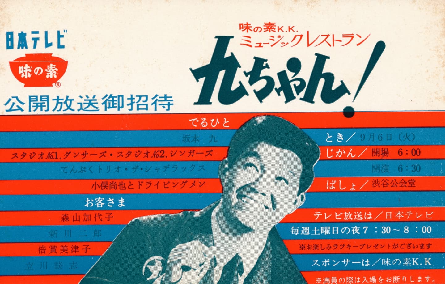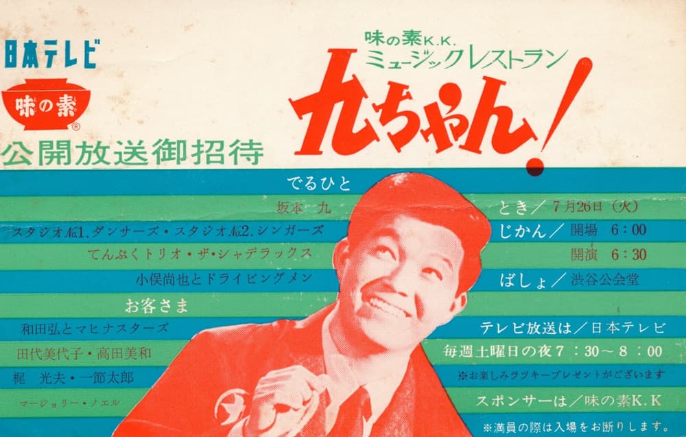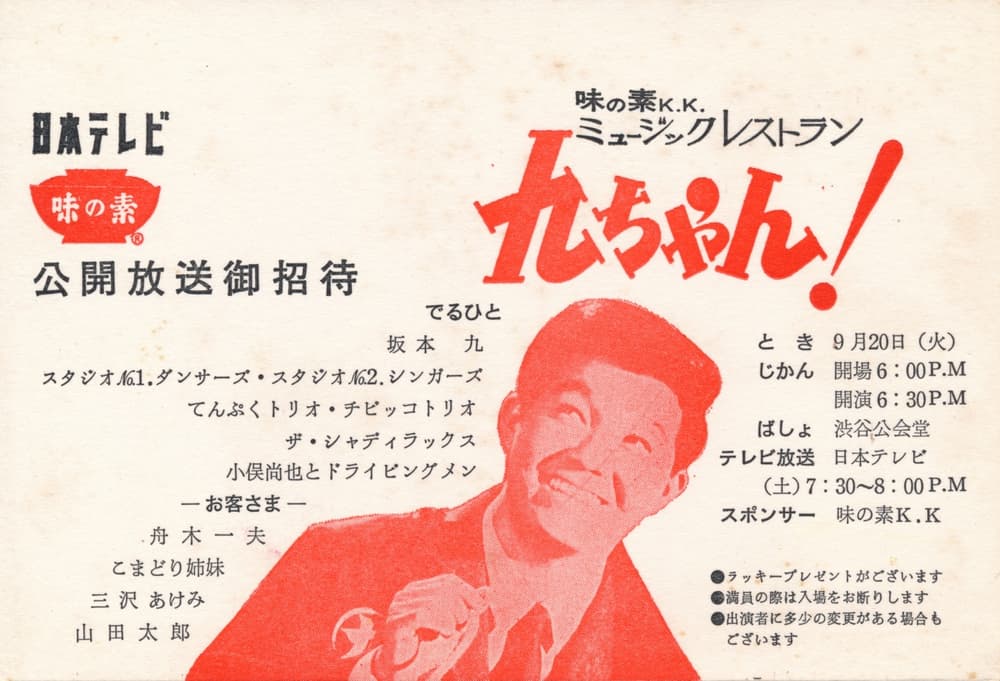 全国16局ネット 公開放送 収録レギュラー:坂本九 てんぷくトリオ スタジオNo.1ダンサーズ 小俣尚也とドライビングメン
