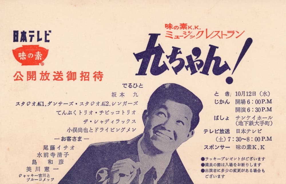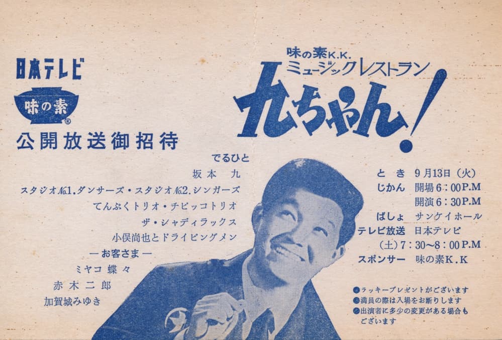 1966-12-10(土) | 坂本九後援会発足 日本テレビ 19:30~20:00「ミュージックレストラン 九ちゃん!」ON AIR |