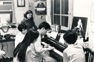 坂本九後援会事務所は、東京メトロ銀座線神宮前駅すぐの立地で、渋谷公会堂など公開放送の会場にも近く、ファンにもテレビ局を移動する九ちゃんにもベストな立地にありました。スケジュールを周知したファンは、「今日こそは」と首を長くして待つ人も。周りにはお蕎麦屋さんなど美味しいお店が多いので、九ちゃんも、遅い昼食を事務所で取ることも多く、会えた人も多かったよう。