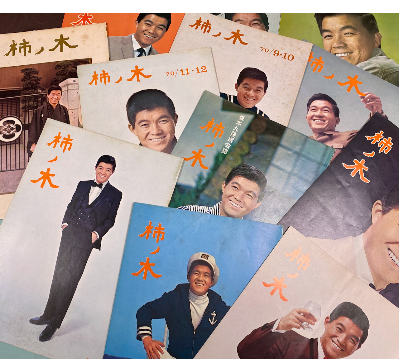 チケットの優先販売や公開放送の招待券配布に加え、1〜2ヶ月に一度発行される会報「柿ノ木」も楽しみでした。事務局長は九ちゃんの七番目のお兄さん、大島東さんで、会報はファン有志で、取材や編集などお手伝いしていました。