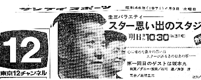 1971-02-26(金) | フジテレビ 09:00〜「小川宏ショー」生放送 TBSテレビ 20:00〜21:26「金曜グランド・フェスティバル」ON AIR |