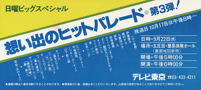 テレホンショッキング:永六輔(水)〜中村八大(木)〜坂本九(金)