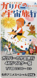アニメ作品「ガリバーの宇宙旅行」4Kリマスター版放送
