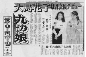公演日は、8月1〜9日の新神戸オリエンタル劇場、12〜20日の東京・日本青年館、26・27日の日野市民会館など。(デイリースポーツ記事より抜粋・紙面画像も)その他、坂本九さん長女が芸能界へ 会見場には母・由紀子さんの姿も(東京中日スポーツ)、九ちゃん遺児芸能界入り(スポーツニッポン)、九ちゃんの愛娘・花子さんミュージカルでデビュー(サンケイスポーツ)、九ちゃんの愛娘・花子顔見せ150人中トップ合格(報知新聞)など。