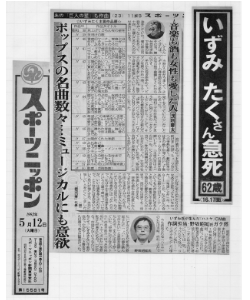 先月、作曲家で参院議員のいずみたくさんが亡くなったのに続く日本の代表的作曲家の死に関係者は衝撃を隠せなかった。(紙面写真:日刊スポーツ、記事:スポーツニッポンより抜粋)