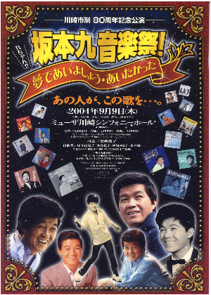 2004年9月9日ミューザ川崎で開催された坂本九音楽祭-九ちゃん!夢であいましょう・あいたかった-を、NHK-BS2 22:40〜23:55でオンエア。