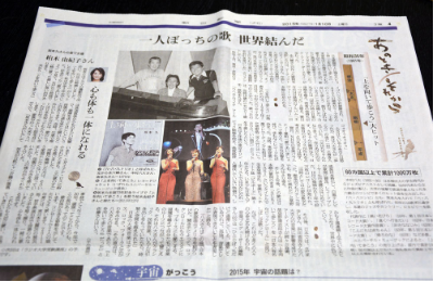 朝日新聞夕刊「昭和36年上を向いて歩こう大ヒット」の特集記事掲載