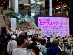 川崎市政100周年。市民が合唱や合奏で「上を向いて歩こう」「明日があるさ」を披露