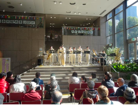 九ちゃんの母校の川崎市立川崎小学校の児童と川崎市立消防音楽隊の演奏で、「上を向いて歩こう」「涙くんさよなら」などを、およそ600人の観客の前で披露した。