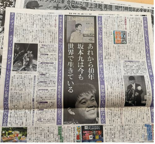 柏木由紀子さんとフリーアナウンサー寺田理恵子さんの対談「人生の道しるべ」の連載が始まりました。第1回は「亡き夫の歌 後世に伝える」。坂本九を知らない世代が増えて、若い世代に伝えて行かなければと「明日へのプロジェクト」を始めたこと、56曲をリマスターしたベストアルバムのリリース、また、来年はコンサートもできたら、と。(月曜掲載・4回)